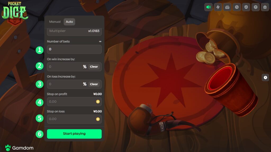 ガンダムカジノオリジナルゲーム『ポケットダイス』はオートプレイできますか?